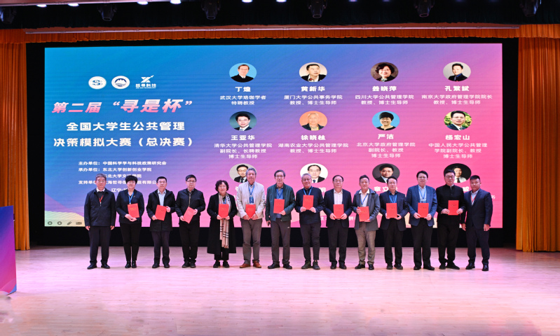 29日上午,第二届“寻是杯”全国大学生公共管理决策模拟大赛(总决赛)举行闭幕式。中国科学学与科技政策研究会副理事长胡志坚,武汉大学珞珈学者特聘教授丁煌,复旦大学国际关系与公共事务学院教授竺乾威,湖南农业大学公共管理与法学学院教授徐晓林,四川大学公共管理学院教授姜晓萍,北京大学政府管理学院副院长严洁,厦门大学公共事务学院教授黄新华,北京师范大学政府管理学院院长章文光,吉林大学行政学院院长张贤明,清华大学公共管理学院副院长王亚华,中国人民大学公共管理学院副院长杨宏山,南京大学政府管理学院院长孔繁斌,中国科学学与科技政策研究会理事刘兰剑,中国科学学与科技政策研究会副秘书长籍斌,上海哲寻信息科技有限公司总经理尹朝辉,台湾swag