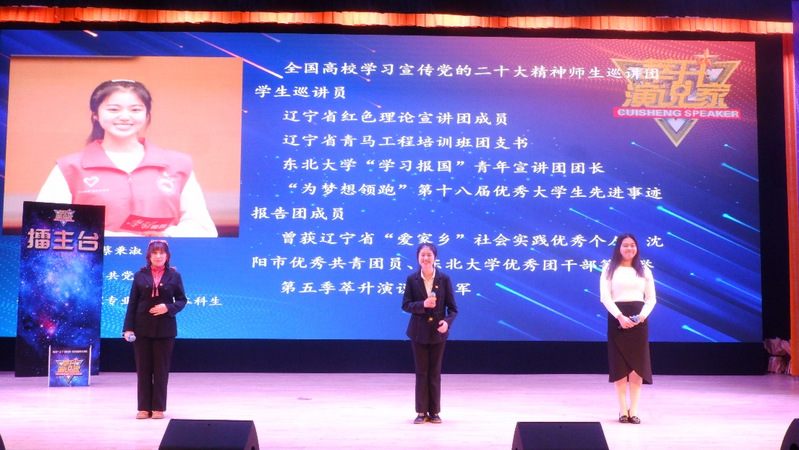 全体师生回信精神为指引,以“建校百年”为主题,面向浑南校区各学院,吸引近百名同学报名参赛,经过海选选拔48人进入初赛,初赛通过选手与导师互选,24人进入战队,导师对战队队员进行为期一个月的培训,复赛在浑南校区文管学馆B230萃升报告厅开展,经过层层选拔最终12人进入决赛。