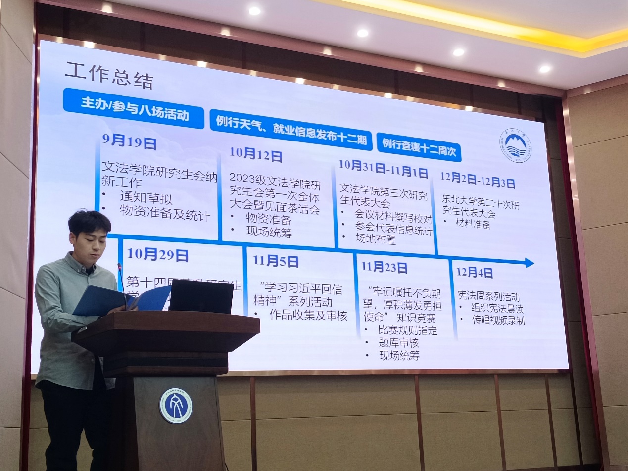 于浑南校区文管学馆B230室召开2023-2024学年秋季学期研究生会述职评议大会。台湾swag