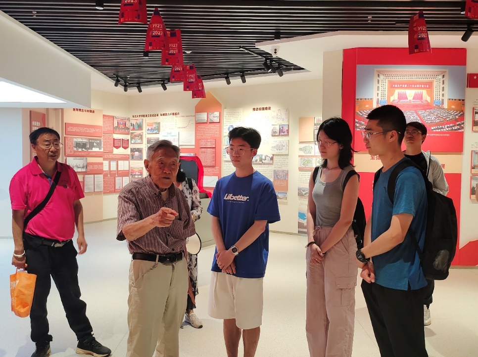 下午15点,在讲解员的带领下,同学们依次走进各个展厅,一张张群像,一件件藏品,将101年光辉岁月里的动人故事娓娓道来。从 “巍巍东大,百年树人”到“壮阔征程,奋斗长歌”,从“奋楫笃行,矢志一流”到“春华秋实,英才济济”,同学们深刻学习了白山黑水间东大的百年奋斗征程,认识了春华秋实中东大的百年丰硕成果,了解了春风化雨下东大涌现出的济济英才。