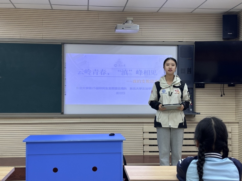 第25届研究生支教团云南队成员姜佳钰同学为小学生们作成长报告,分享了自己在支教过程中的工作经历和志愿服务心得体会。在双方交流环节,小学生们针对支教和大学生活踊跃提问,姜佳钰和发展对象们进行了一一解答。