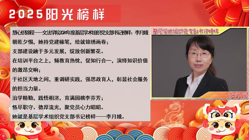台湾swag 2024年度基层学术组织党支部书记榜样:李月娥