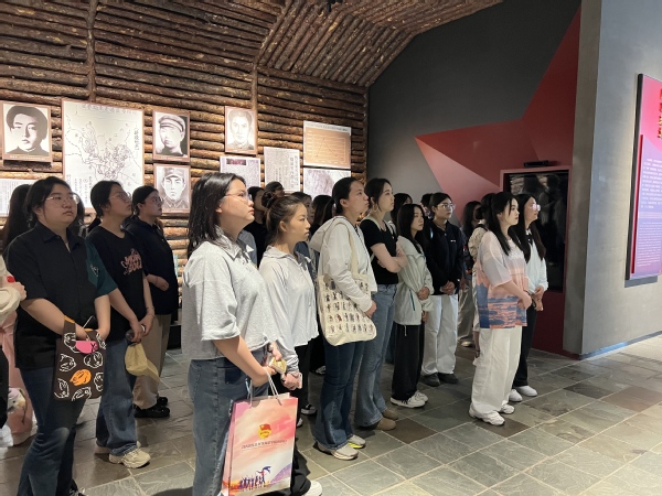 上午10时,活动在授班旗仪式中正式开始。全体人员高唱国歌、敬献花篮、三鞠躬致敬,以庄重仪式表达对先烈的深切缅怀。在重温入党誓词环节,四名执旗手高举党旗,师生党员面对党旗庄严宣誓,誓言铿锵有力,彰显“传承抗联精神、牢记初心使命” 的坚定决心。在东北抗联史实陈列馆,师生们怀着崇敬的心情,认真聆听讲解员讲述东北抗日联军在极端恶劣环境下,与日本侵略者展开艰苦卓绝斗争的英勇事迹。通过丰富的历史照片、珍贵的文物展品以及逼真的场景复原,大家仿佛穿越时空,亲眼目睹了抗联战士们在冰天雪地中浴血奋战、顽强不屈的身影,深刻感受到他们坚定的理想信念、高尚的爱国情操和伟大的牺牲精神。