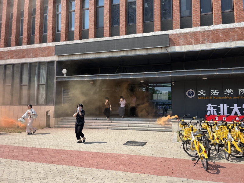 在浑南校区文管学馆开展“人人讲安全、个个会应急——查找身边安全隐患”应急疏散演练,校公安处老师协助开展指挥,学院30余名师生参与演练。